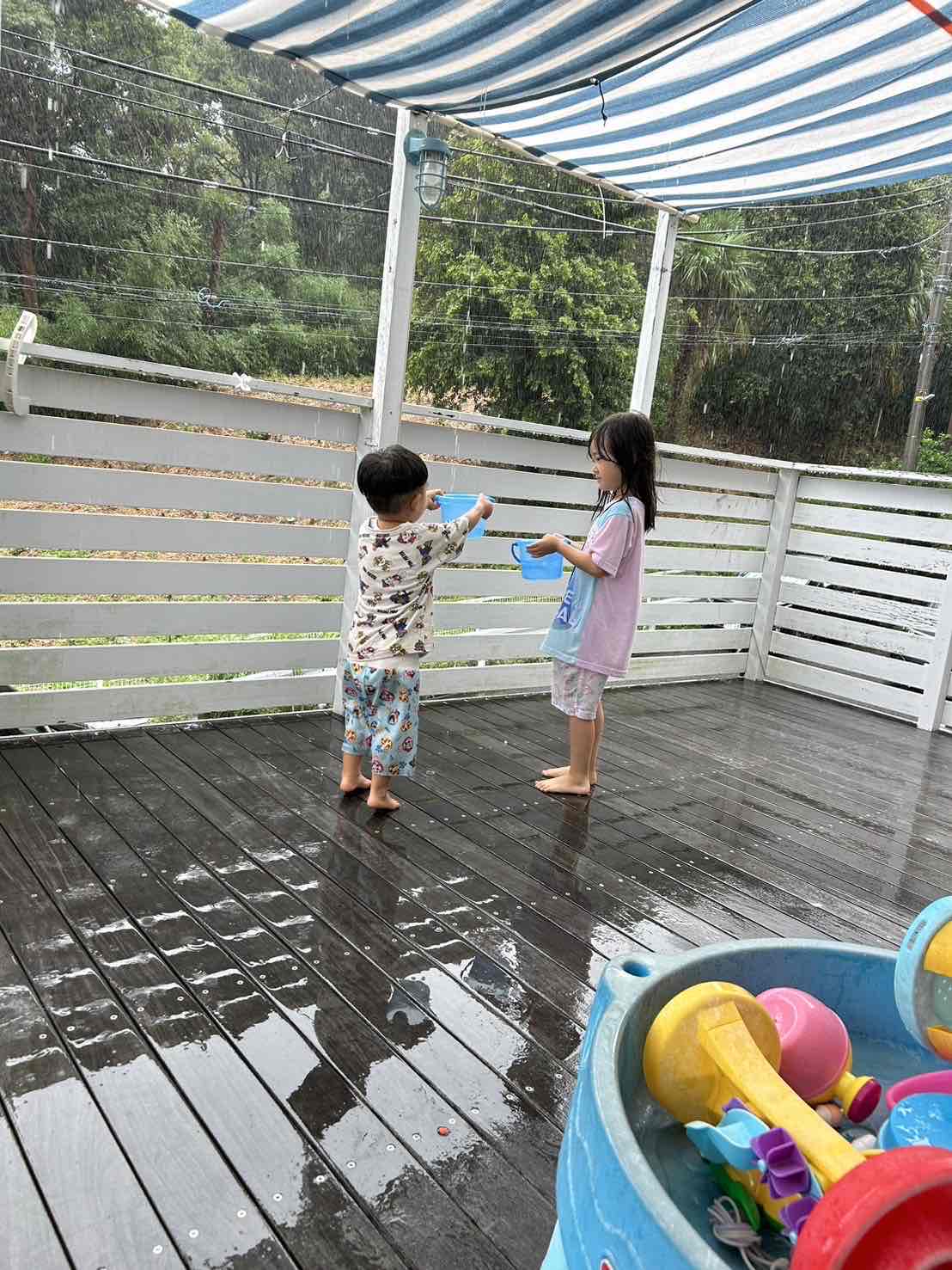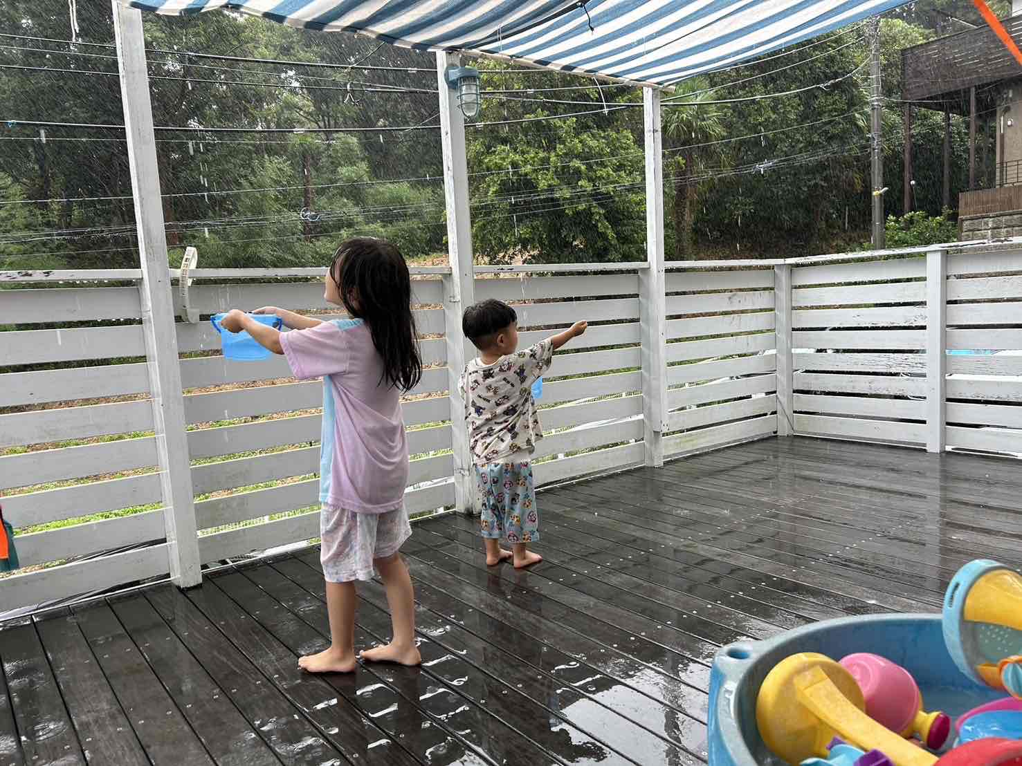 雨に打たれてめちゃめちゃ楽しそうにしてました😂